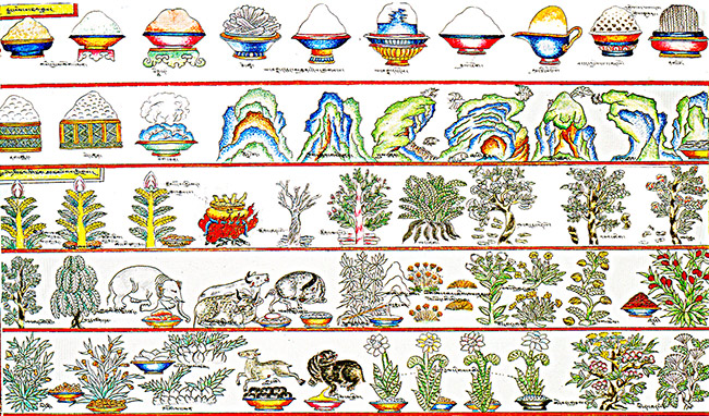 青藏高原地域的遼闊和自然條件的復(fù)雜多變,決定了它豐富多彩的動(dòng)植物資源。據(jù)多年來(lái)調(diào)查采集的標(biāo)本和搜集的資料統(tǒng)計(jì),已入藏藥的植物計(jì)有191科682屬2085種。其中菌類植物5科5屬50種;地衣類4科46種;苔蘚類5科5屬5種;蕨類30科5屬5種裸子植物52屬47種植3變種;被子植物131科581屬1895種141變種。此外,尚有動(dòng)物藥57科111屬159種,礦物藥50余種。常用藏藥中有三分之一用藥與中藥相同。藏區(qū)本地草藥占常用藏藥一半以上。